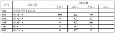 三、鼓动应以每个议案组的选举票数为限进行投票。鼓动左证我方的意愿进行投票,既不错把选举票数集会投给某一候选东谈主,也不错按照放纵组合投给不同的候选东谈主。投票完了后,对每一项议案分歧集结计较得票数。